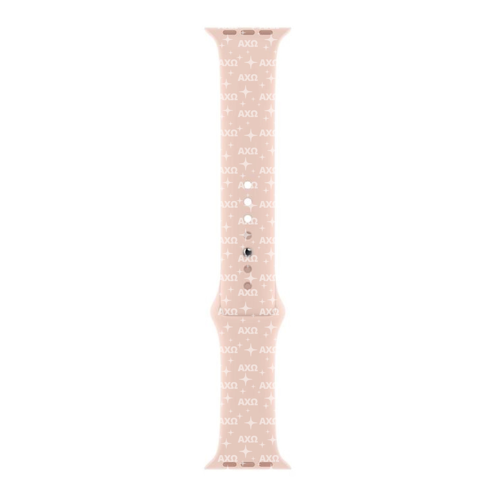 Represent Alpha Chi Omega sorority in style with our brand new Silicone Smart Watch Band! Each band is embossed with your sorority's letters and trendy repeating star pattern. Fully adjustable to your wrist size and easily cleaned due to the durable silicone, our watch band is the perfect accessory to wear year round. The best part? Our bands are the cutest shade of Millennial Pink!