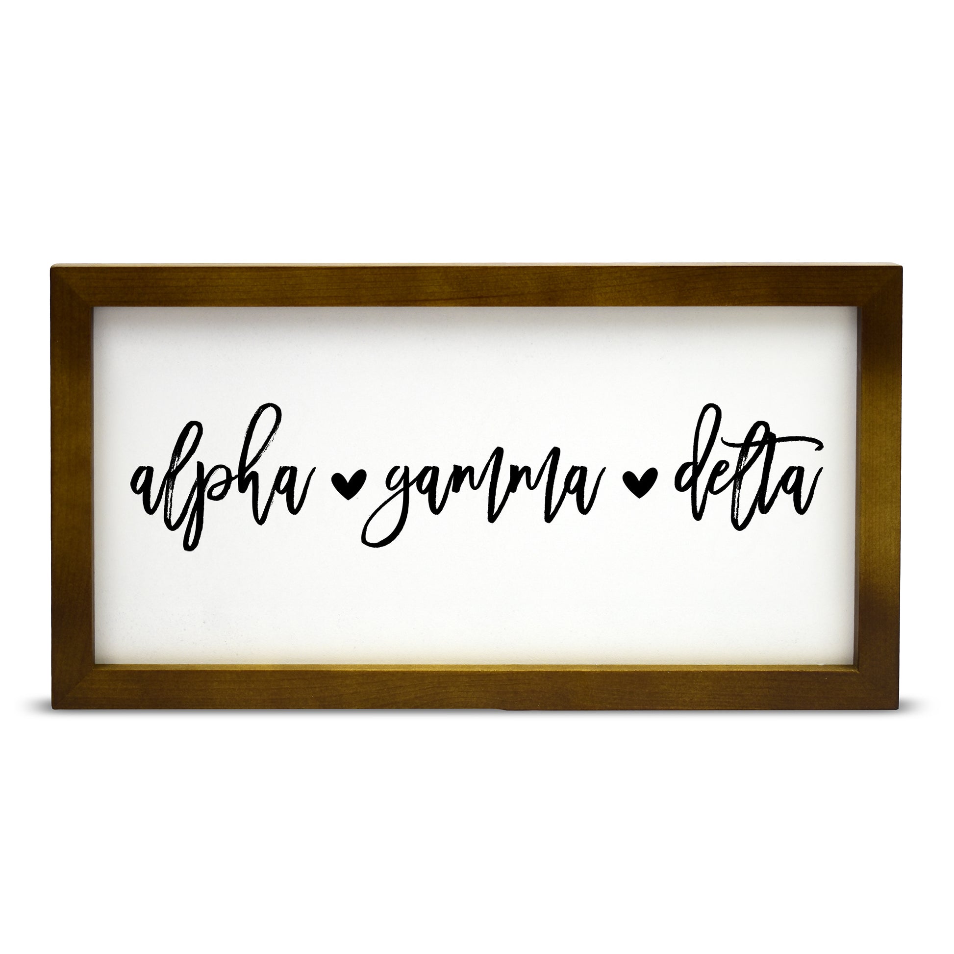 Add Sorority Spirit to your décor with our Sorority Script Large Wall Art! Each wooden sign features a brushstroke script with heart detailing on canvas and bordered with a wooden frame. A great item for yourself or to give as a gift, our wooden sign makes the perfect statement piece for your dorm or sorority house!