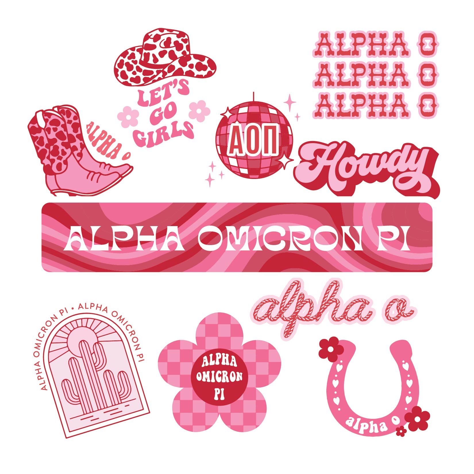 Alpha Omicron Pi Sticker Sheet - Western Disco Design