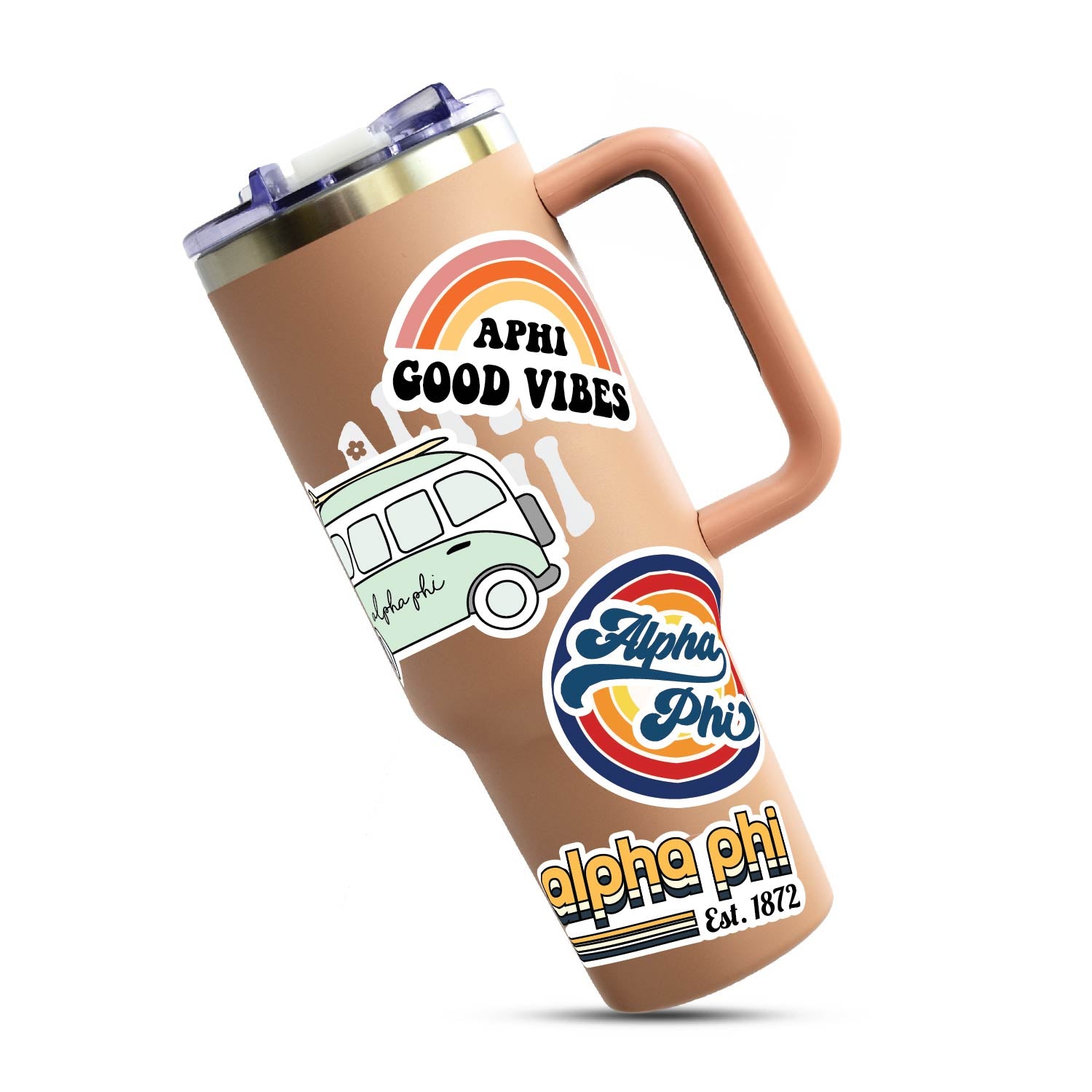 Get your "Greek On" with these high quality, Super Groovy Retro Theme stickers! Each sheet contains 7 stickers unique to your sorority. Printed on sturdy vinyl, they are easily removed or repositioned leaving NO STICKY RESIDUE! These stickers are the perfect way to show your sorority spirit - display them on a notebook, computer, or almost any clean dry surface, the possibilities are endless! Our officially licensed stickers make great gifts for sisters and are great to stock up on for special events or rush week.