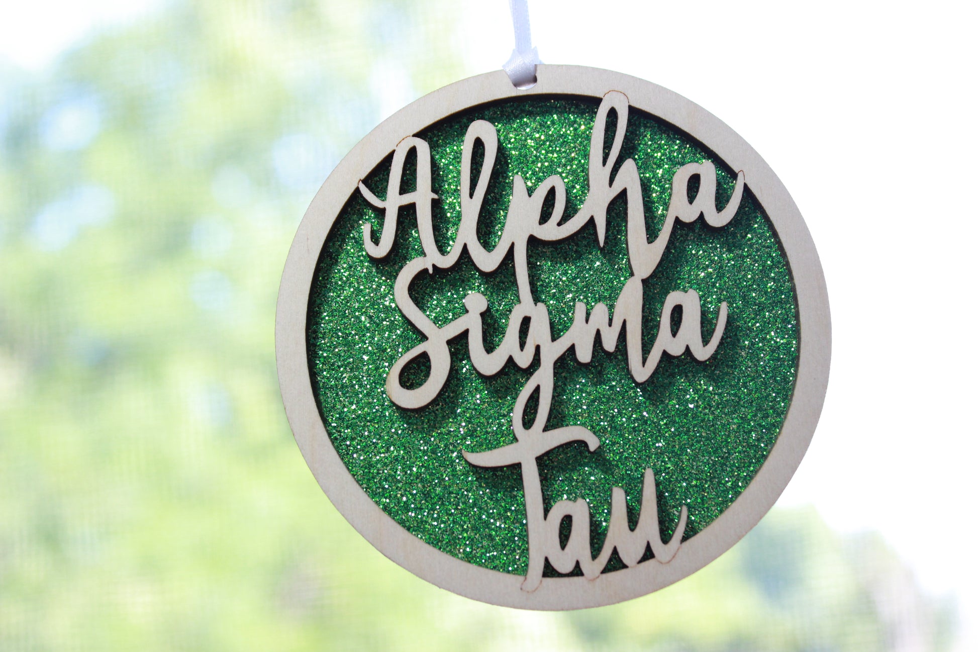 Available in Greek Letter or Script Name designs. These Ornaments are the perfect way to celebrate your Sorority Sisterhood. Laser carved out of wood and set against a sparkly background, they are guaranteed to get your spirit going. Perfect as a holiday decoration for home, dorm, or even your car!