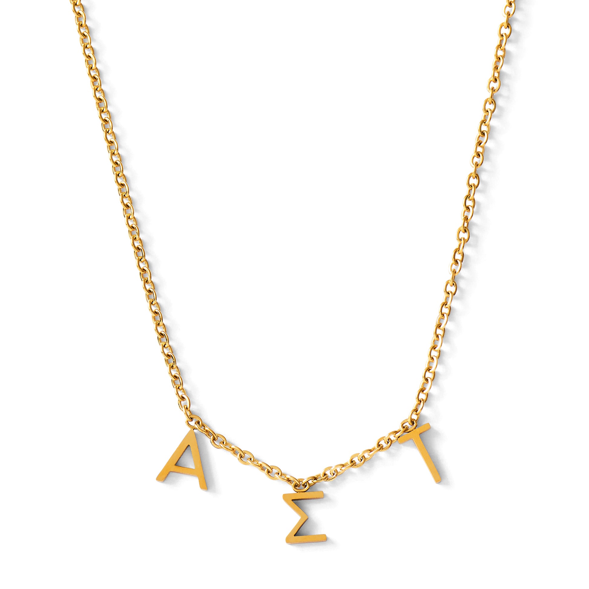 The perfect gift of Sisterhood! Our Sisters Forever Sorority Name necklace features your sorority name or nickname dipped in 18k gold! Perfect for a bid day gift, big little gift or a treat for yourself!