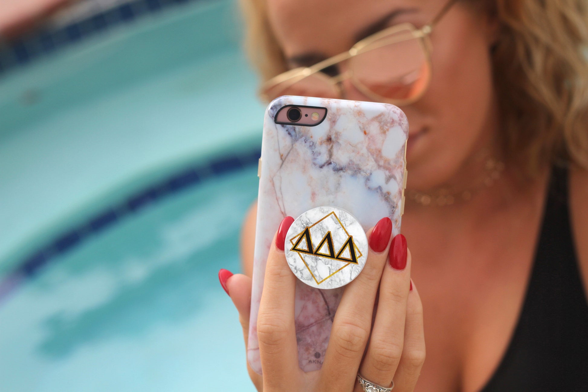 Never Drop your phone, take better selfies and prop your phone with new Delta Delta Delta Popsockets! An official Popsockets + Sorority Shop collab! PopSockets stick to phones, tablets and cases. Can be re-positioned. Greek letters with marble background and gold foil detailing. Officially Licensed Greek Product.