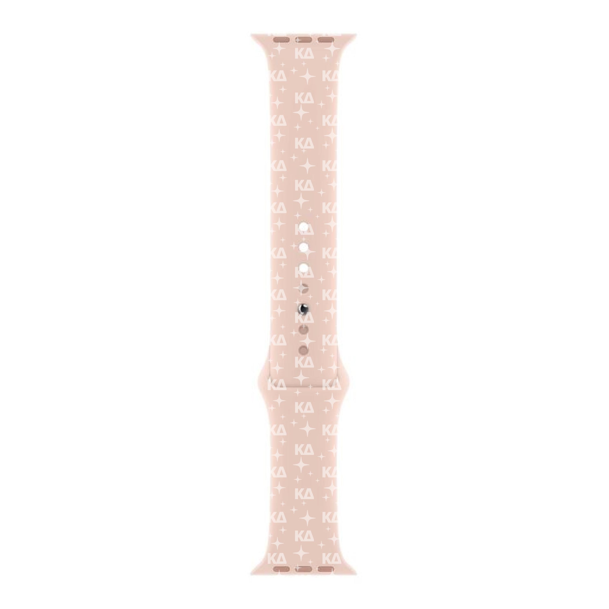 Represent Kappa Delta sorority in style with our brand new Silicone Smart Watch Band! Each band is embossed with your sorority's letters and trendy repeating star pattern. Fully adjustable to your wrist size and easily cleaned due to the durable silicone, our watch band is the perfect accessory to wear year round. The best part? Our bands are the cutest shade of Millennial Pink!