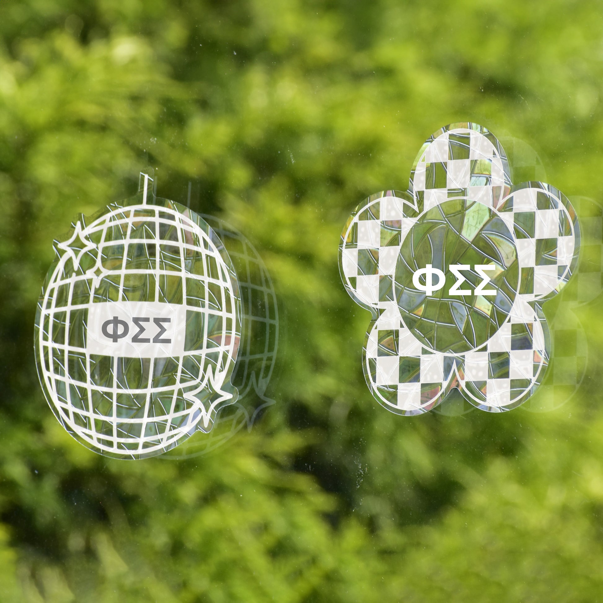 Phi Sigma Sigma Suncatcher Decals- Set of 2: Flower & Disco Ball