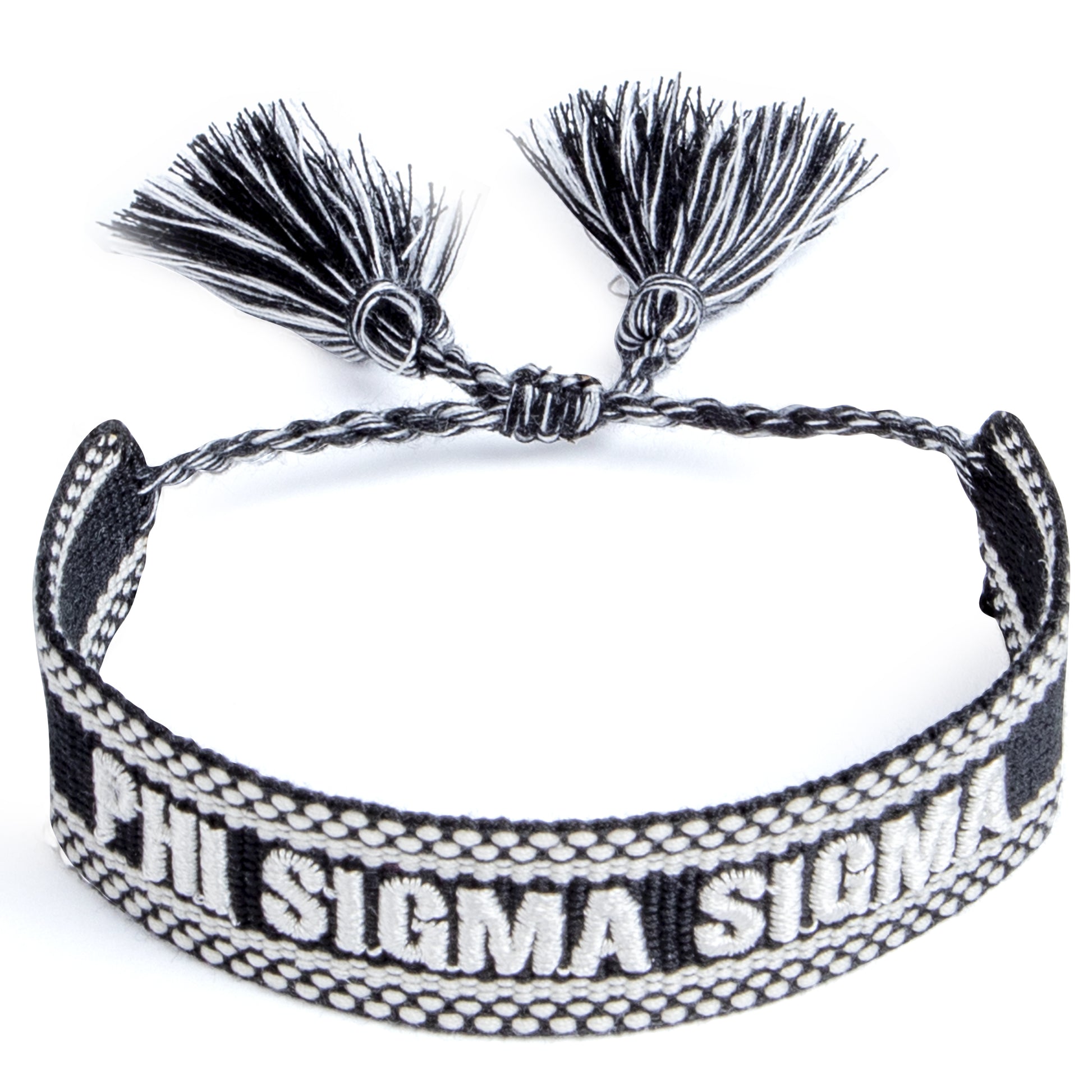 Phi Sigma Sigma Woven Bracelet, Black and White Design