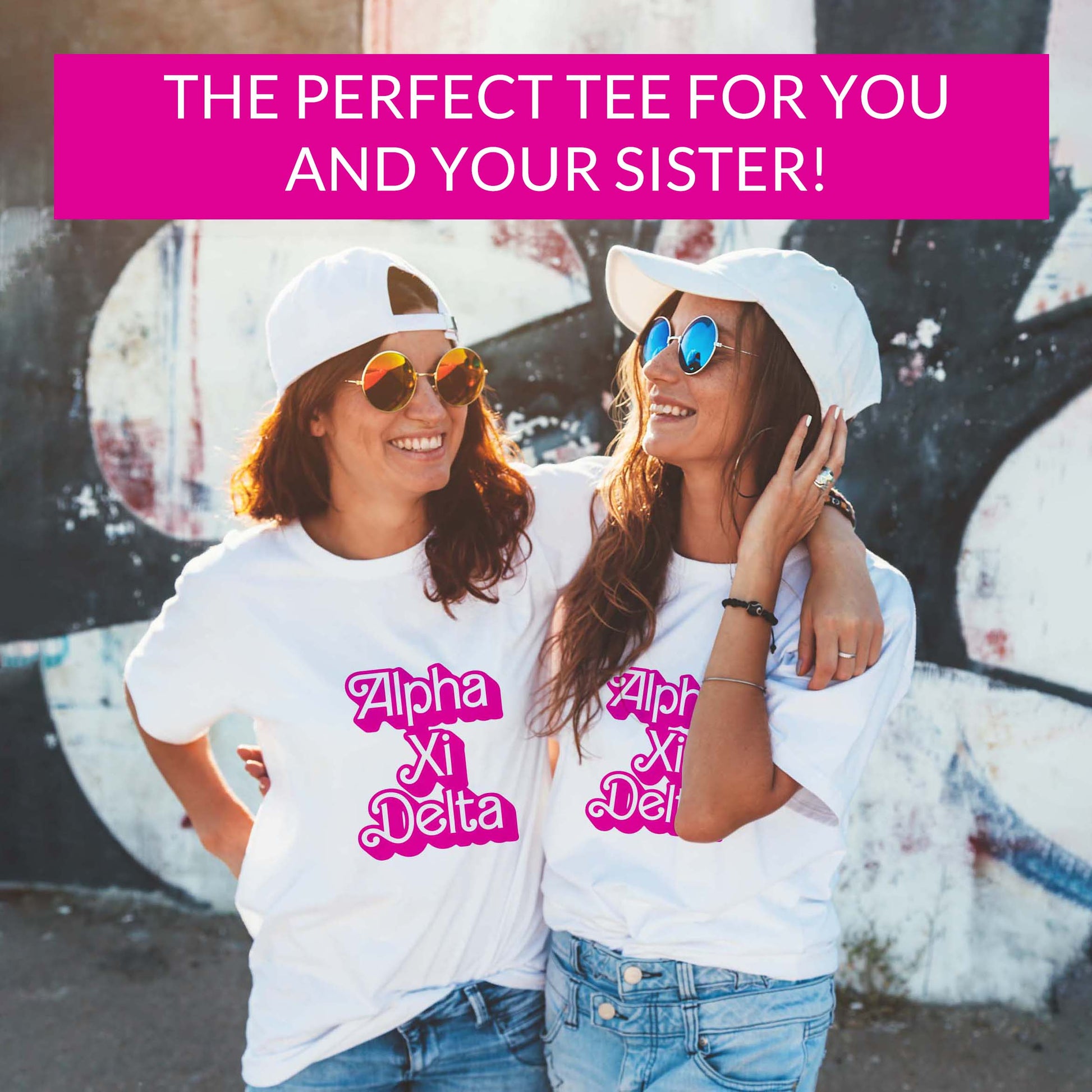 Show your sorority pride with our officially licensed t-shirts, perfect for sorority gifts and big little presents. This heather 6400 CVC fabric is made from 52% airlume combed and ring-spun cotton, and 48% polyester, ensuring durability and breathability. High-quality DTF transfer proudly displays your sorority name in that gorgeous font!