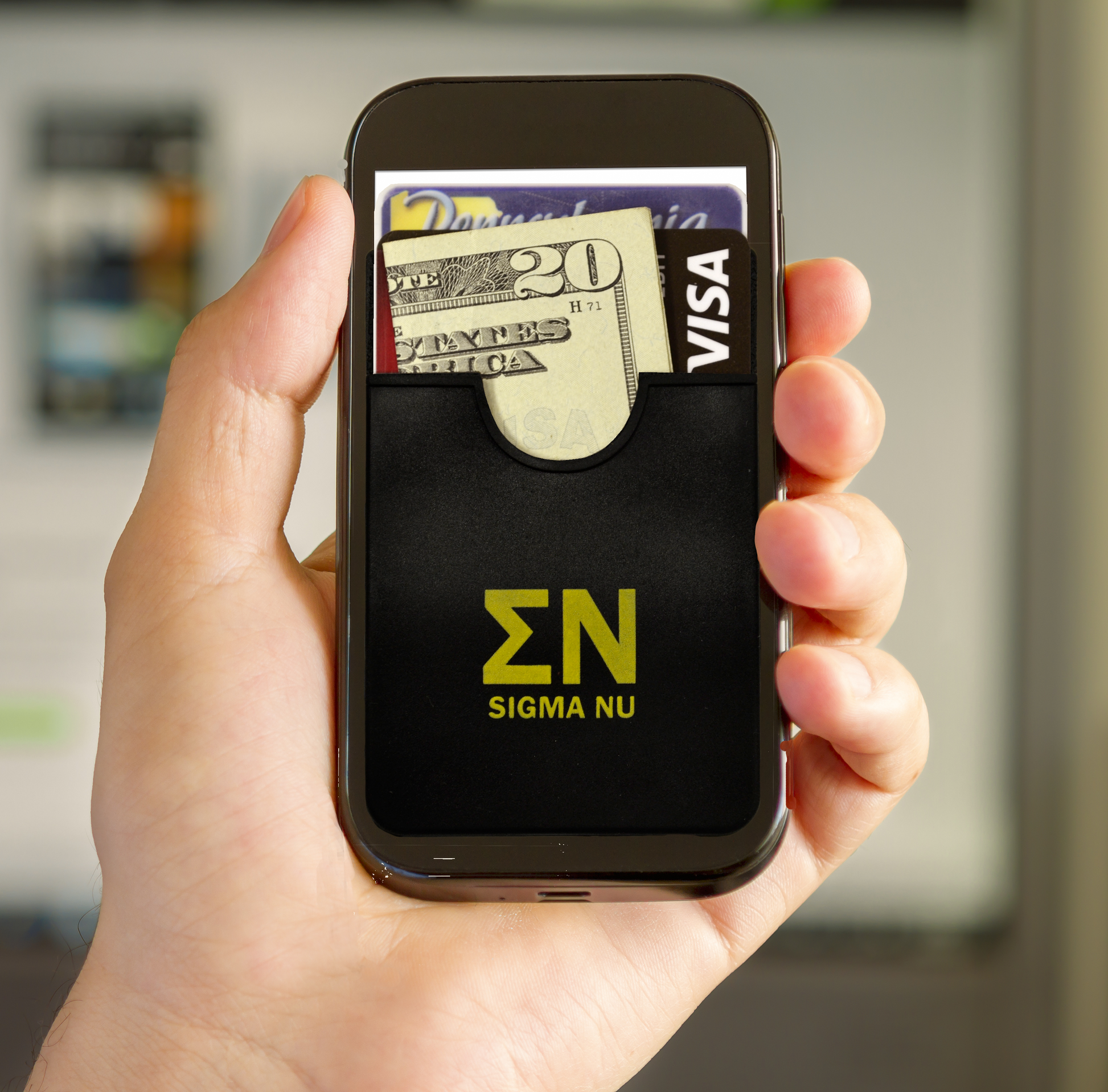 Show your fraternity pride with the Koala Pouch, adhesive cell phone wallet, the perfect solution for the multitasker on the go! Keep all of your valuables safe and secure in one place while reducing the amount of items you routinely carry. The Koala Pouch will securely hold up to 3 cards at a time and helps you with gripping your device as well.