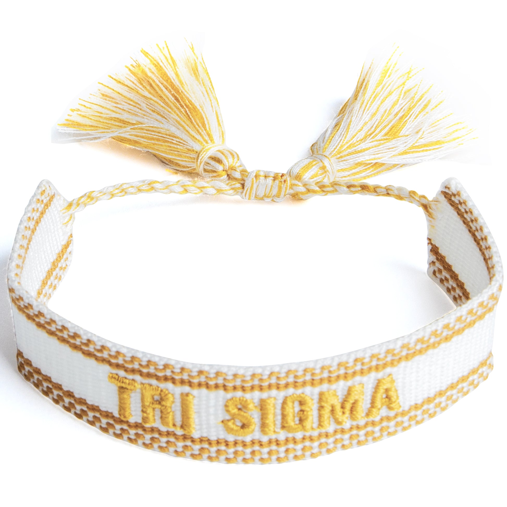 Sigma Sigma Sigma Woven Bracelet, White and Gold Design