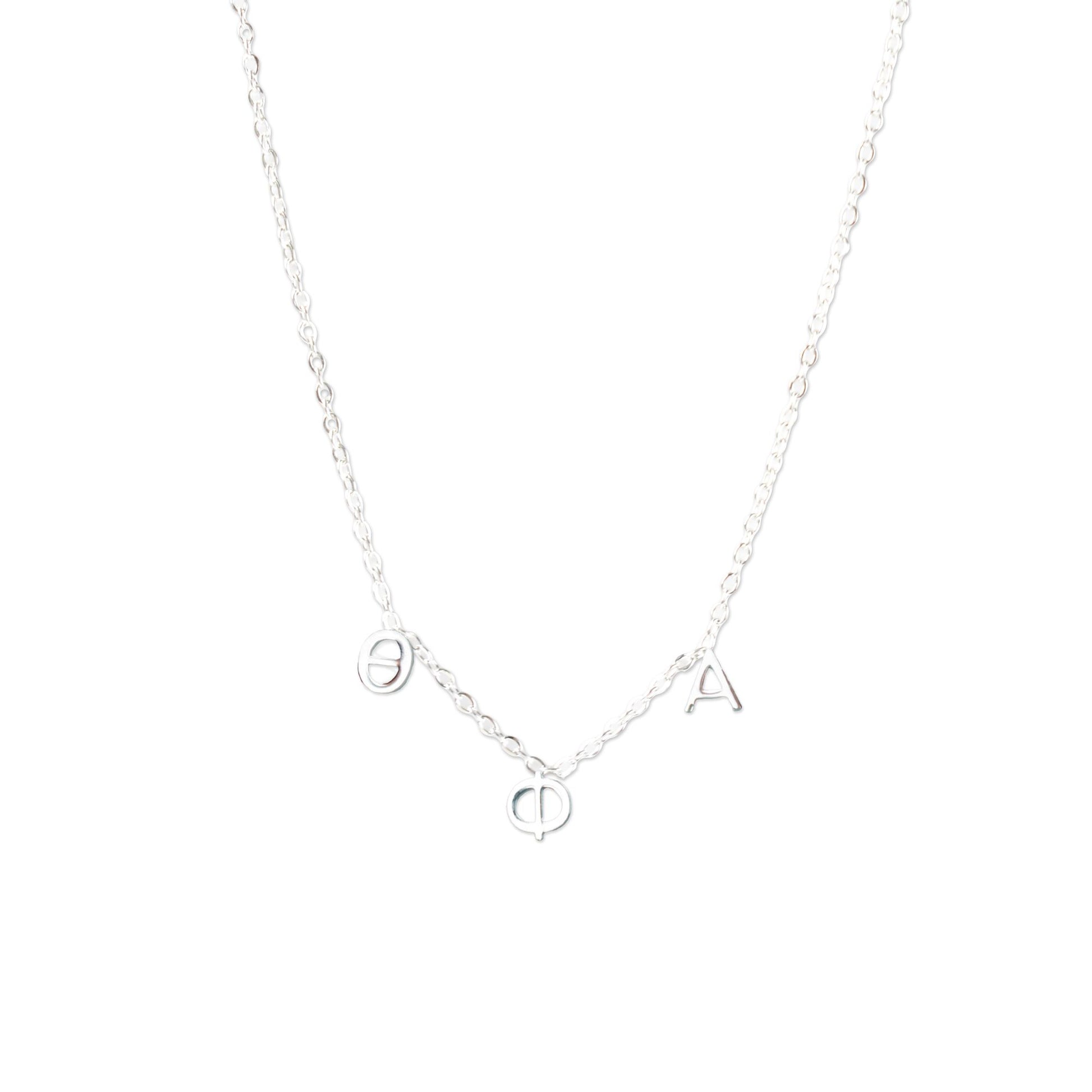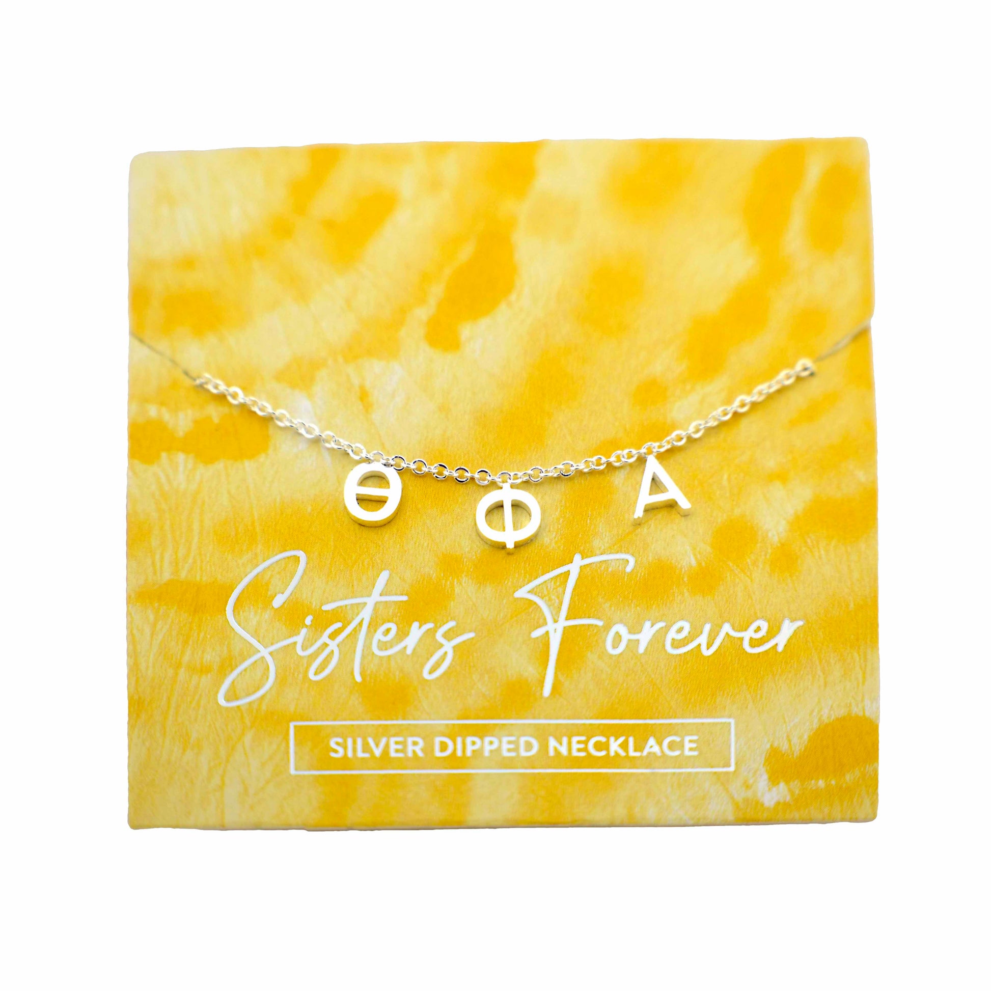 The perfect gift of Sisterhood! Our Greek Letters necklace features your sorority letters dipped in silver! Perfect for a bid day gift, big little gift or a treat for yourself!