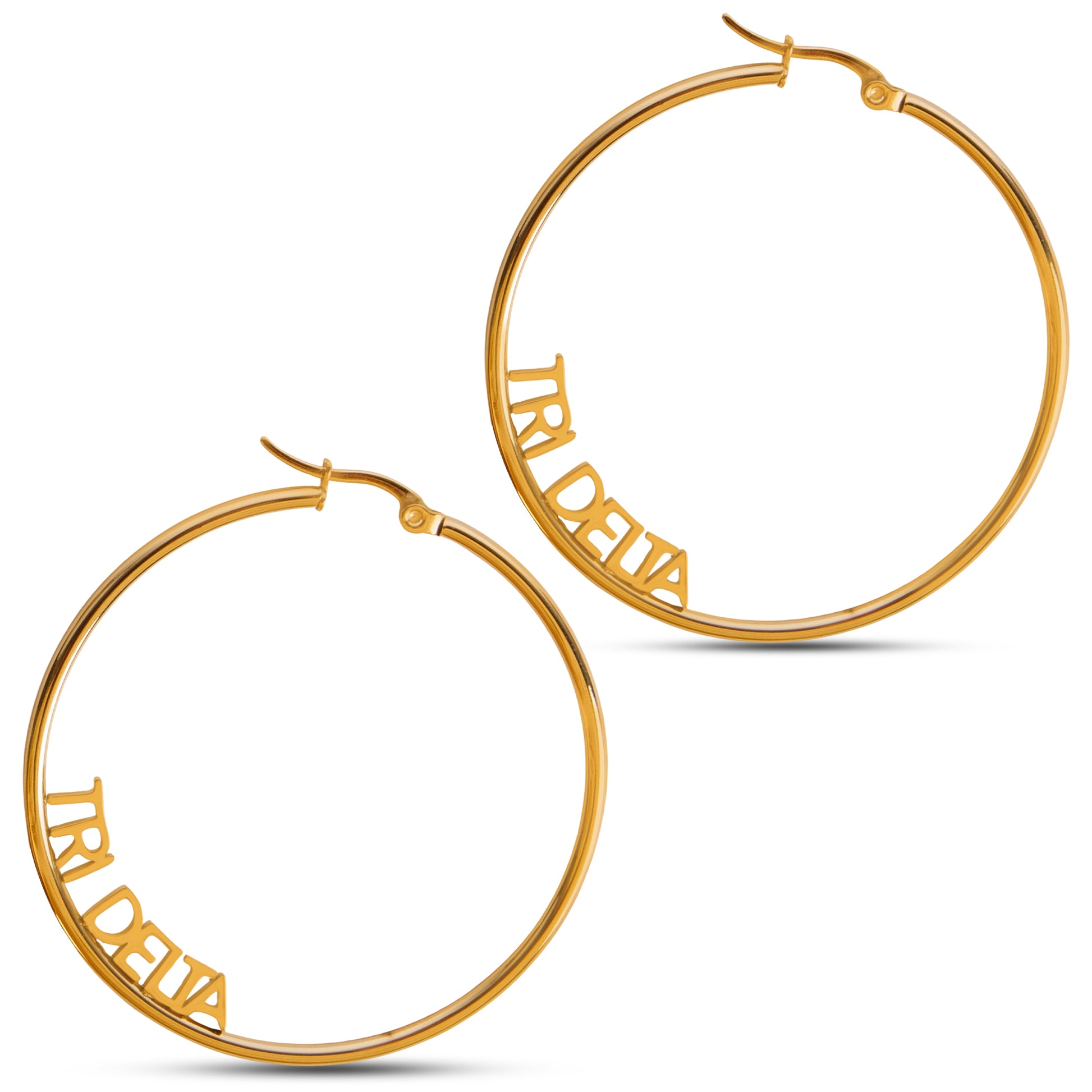 Sorority shop is dedicated to providing high-quality Greek sorority gifts. Show your support to the sisterhood by wearing our fabulous earrings! We all enjoy wearing jewelry to class, parties, work, and other places. So, what's better than having your sorority's name emblazoned on it? Buy this set of hoops for yourself or gift it to your sorority sisters on bid day, big little, or birthdays. Showcase your association with the fantastic 18 karat gold-plated earrings. The perfect souvenir for you and other members is right here. ADD TO CART NOW!