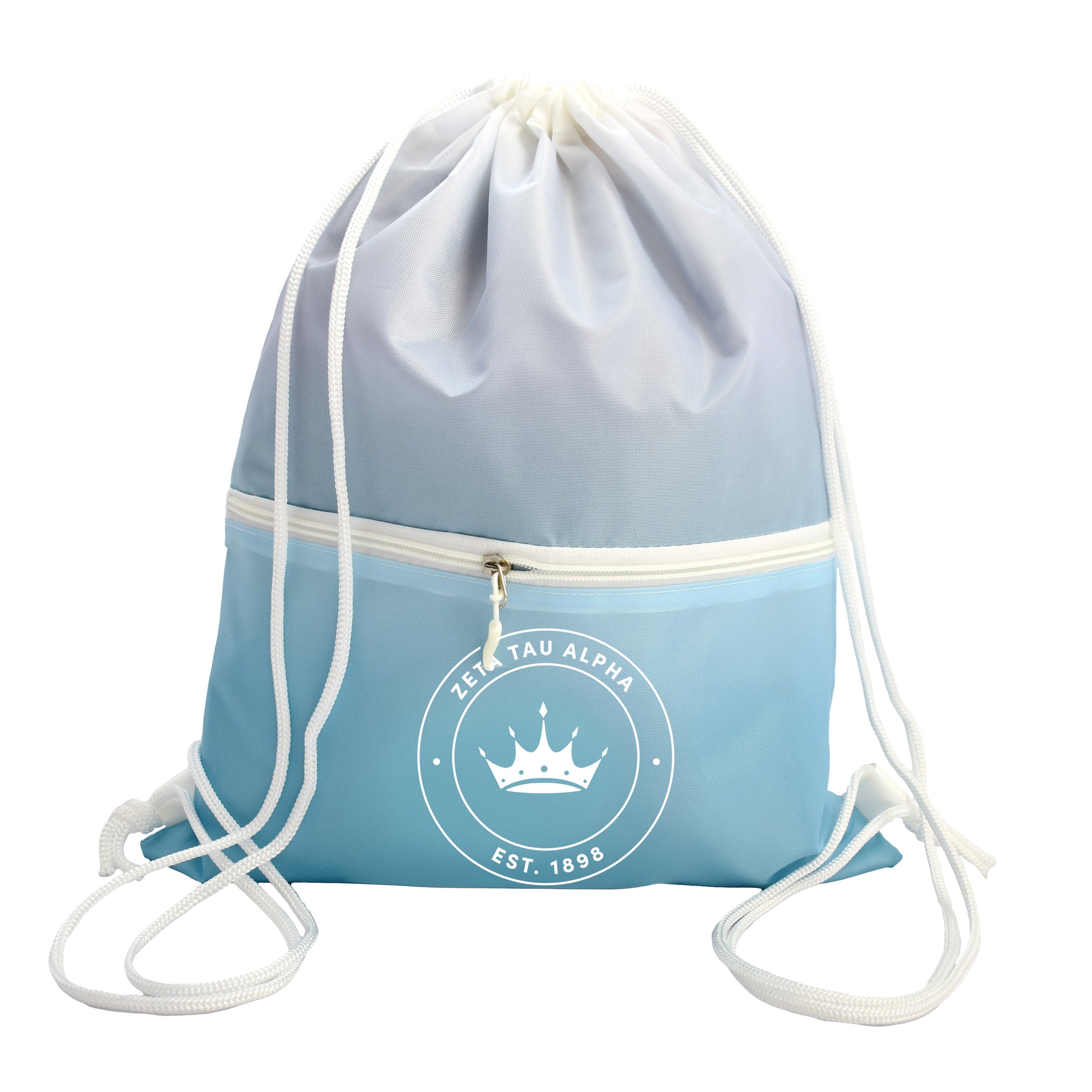Zeta Tau Alpha Drawstring Backpack, Ombre Color Design